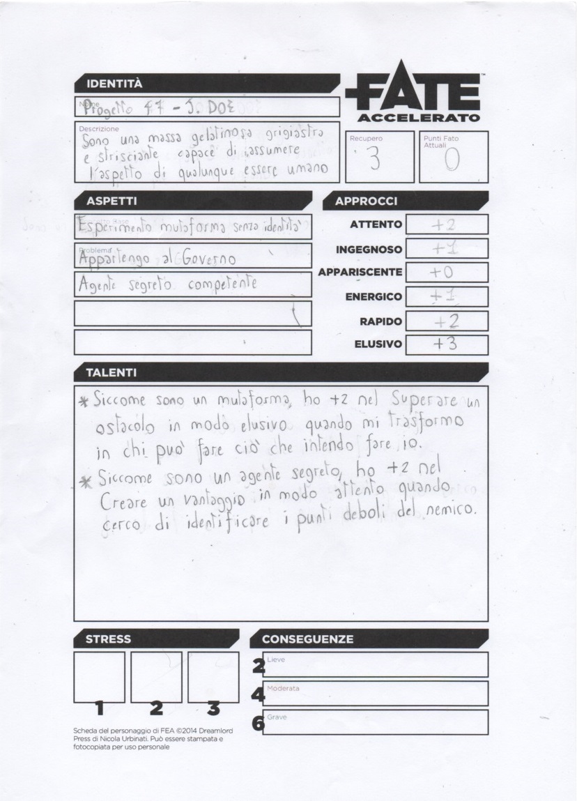 | Il mio primo personaggio di Fate, creato per la demo a Lucca 2014.